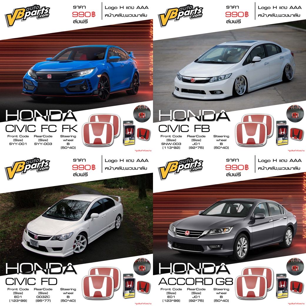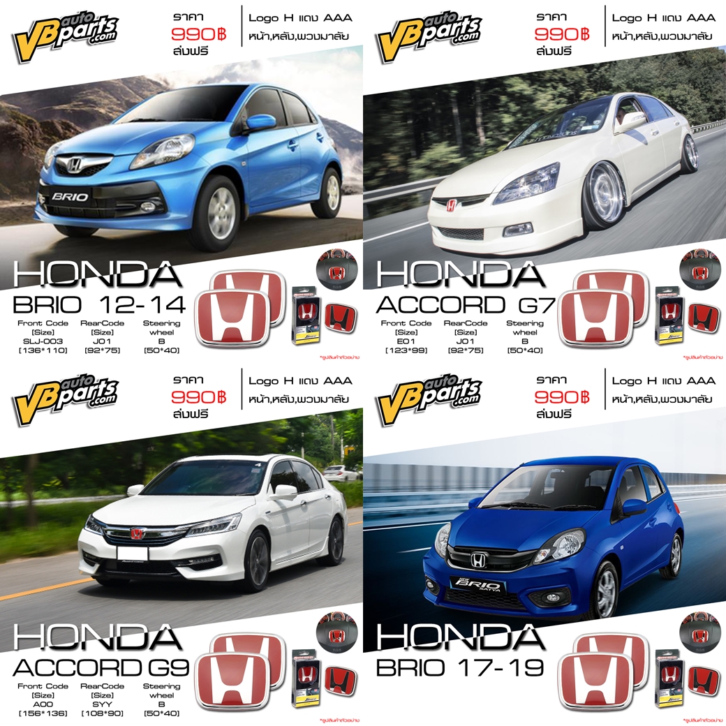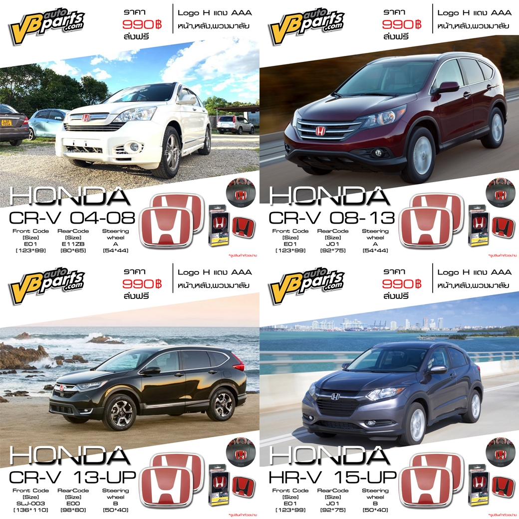 VBautoparts ได้รวบรวมรวมโลโก้ Honda (H แดง) หน้า-หลัง มาให้แล้ว มีให้เลือกหลายรุ่น ใครกำลังมองหาโลโก้ Honda (H แดง) ไม่ควรพลาด