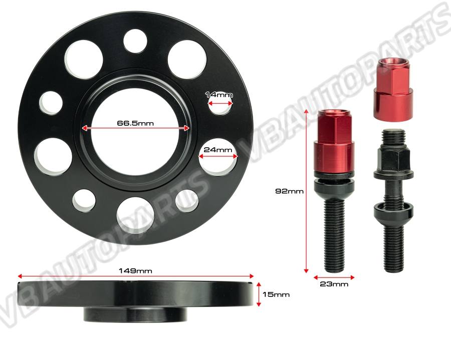 ชุดน็อตล้อ M12x1.5 45mm. + อแดปเตอร์ PCD 5x112 หนา 15mm. CB 66.6mm.
